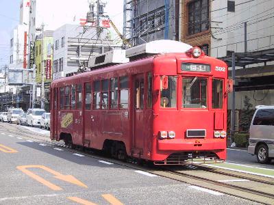 この後はこのまま、新岐阜方面へ行く。しかし、美濃町線は、今では、他で見られないような道路と住宅との間の専用とも併用ともつかぬ軌道を通り、非常に面白い。美濃町線は野々市で接続する徹明町行に乗り換える。徹明町に限らず、岐阜市内線の電停はいわゆる安全地帯のない停留所タイプで慣れていないと乗り降りが非常に怖い。名古屋の先輩の話では、数年前にも徹明町で電車を降りた方が車にはねれれ亡くなったそうだ。こんな話を聞くと、降りるのに、ますます、おじけづく。しかも、さすがに市内だけあって、交通量も多い、車もかなりのスピードで乗降中の路面電車の脇を通過していくっておいおい...教習所でさ、安全地帯のない路面電車の停留所に電車が止まっている場合は、必ず、その後で一旦停車っていう交通法規、習ったと思うんだけど、誰一人守ってないじゃん。警察はそういうの厳しく取り締まって欲しいもんだよ、まったく!でも、地元の人は何でもないように、ひょいひょい電車の乗り降りをする。名古屋の先輩も、道路の真中で、堂々と市内線の撮影なんかしちゃってるし。やっぱり慣れの問題なのかな。徹明町で怖い乗り換えを体験したあとは、市内線の終点、忠節