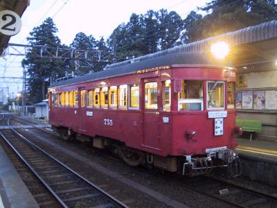 黒野で、本日最後というより、今鉄最後のメインイベントの谷汲線、揖斐線に乗る。まずは谷汲から。車両は古豪750形。昭和初期製の古めかしい車両になんともいえない風情を感じる。車内は、かなりのファンで混雑しているが、床の木造はもちりん、網棚をささえるパイプも今では機能一辺倒の鉄管にすぎないが、750形では、優美なデザインが施されている。その他、細かいところにも、今の車両ではない、装飾が随所に見られる。沿線にはファンの撮影姿も見られる。列車は谷汲線の一番の見せ場である揖斐川のほとりを大曲しながら、コトコトと進み、やがて、森の中に分け入ってゆき、その森を抜けると終点の谷汲になる。谷汲では、折り返し列車を待つ大勢のファンから一斉にシャッターを切られる。あまりにものファンの多さに、普段の姿を垣間見れることも出来ずに、帰りは、座席にも座れなかった。この活気が普段も続いていればなんて思ってしまうのは愚かなことだが、そう思わずにはいれれなかった。
