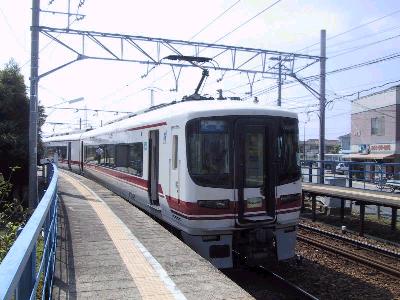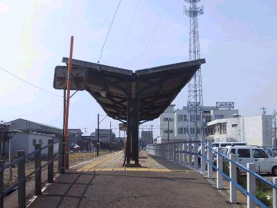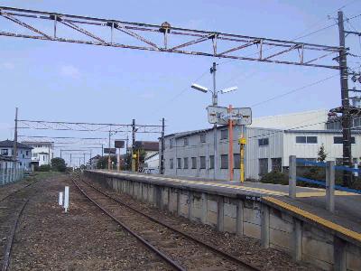| 佐屋行特急の到着。ここで折り返し運転を行う。 | 普通の2面2線のホームで、特急の始発駅とは思えないが 1時間に1本が運転されている。 |