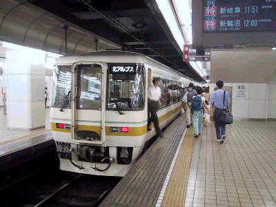 北アルプスは新名古屋始発だが、ご存知新名古屋ホームは3面2線と手狭で、始発の特急といえども、長らく止めておくことはできない。北アルプスが入線するとともに、ファンは一斉にカメラのシャッターを切り、あわただしく、列車に乗り込む。そのうちの1人に私もいる。(笑)。