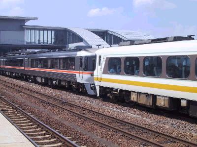 | そして、こちらが相方のJR東海85系の「ひだ」 | 並結完了! |