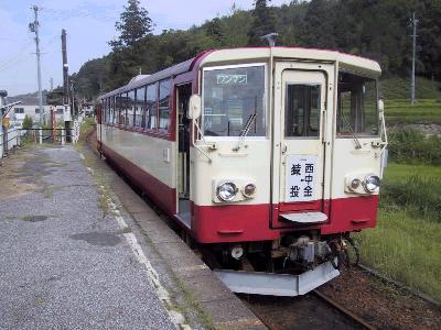 は地元の年配客と私を含めた若干の鉄道ファンが乗り合わせていたが、それでも、両手で足りる程度だ。鉄道ファンがいるのは、私と同じようにこの9月で廃止になる線区を乗りに来たついでに、いつ廃止になるかわからないこの線にも乗っておこうという意識が働いたからであろう。猿投からは西中金まで、距離的にはそんなになさそうだが、次の三河御船を過ぎると、一気に山村へと入っていく。西中金は無人で、ホームも1面の小さな駅だが、目の前には比較的広い道路にバスが走っている。これでは、バスにされてもやむを得ないのかもしれない。列車に接続するように数人の客を乗せて、バスは出発して行ったが、折り返しの列車のために乗客も運んできている。ちょうど時間がいいためか、帰りの列車にはそこそこの人数が乗っている。廃線にならないためにも、地元の人には積極的に列車に乗って欲しいものであるって思うのは、東京のファンの勝手な言い分なのかもしれないが、そう願わずにはいられない。