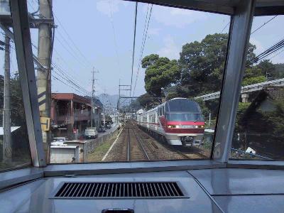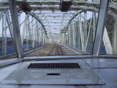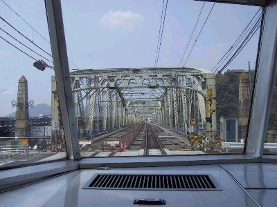 | 7000系パノラマカー展望席から パノラマスーパーとのすれ違い | 犬山橋を渡ります。 |