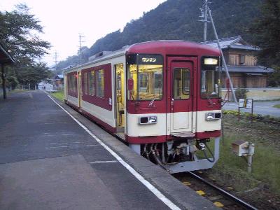 大須から新岐阜に戻り、各務ヶ原線経由で八百津線へ。私一人のときは、7000系パノラマカーだったのに、先輩がきたとたん、オールロングシート車にあたる。嫌味をチクリといいながら、犬山、そして、明智へ。(笑)。8月も終わりに近づくと6時を回るとすでに、黄昏時となり、明智からワンマンの30系気動車での行程は郷愁を誘う。