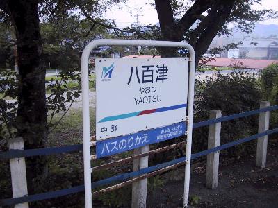 | 八百津駅に停車中の明智行 | 八百津駅名表 |