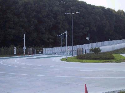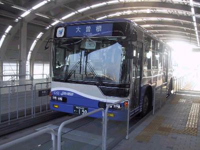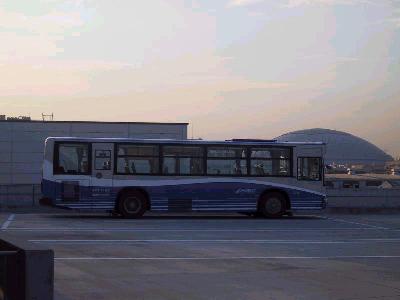 そして今回の第一目的のガイドウェイバスに乗る。まず、ガイドウェイバスとは何か簡単に説明しておくと、高架橋の道路上の脇にガイドがあり、このガイドに沿って、バスが運転されるもの。運転士はハンドル操作はせず、アクセルとブレーキ操作のみを行う。多少形は異なるが、よく子供向けの遊園地にありがちな、レール付きのゴーカートのような感じかもしれない。ただ、ガイドウェイバスの優れている点は、市内の混雑区間は、高架専用道路をガイドに沿って走るが、郊外に行くと、インターチェンジのような形で、一般道路に結節しており、そこからは普通のバスと同じように走ることができるのである。水陸両用ならず、軌道、道路兼用なのである。このガイドウェイバスはドイツのエッセン市などにはすでに存在するが、日本では初登場になる。このバスと新交通システムのあいのこのようなものに乗車するが、駅部は新交通システム、車両は完全にバスである。駅には改札口らしきものはあるが、素通りできる、それもそのはず、バスは中扉から乗って整理券を受け取り、降車時に運賃を運賃箱に入れるという、典型的なバスの乗り方であるためだ。バスは普通のエンジンで動くため、乗り心