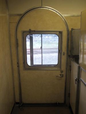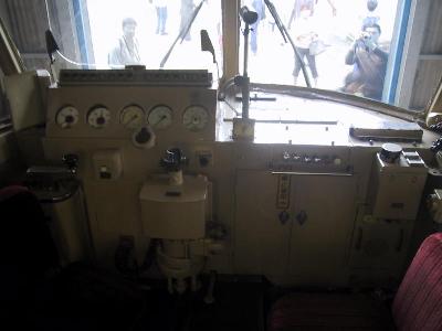 | 上部の円形になったドアが特徴でした。このドアは手動です。 | 運転台の様子 |
