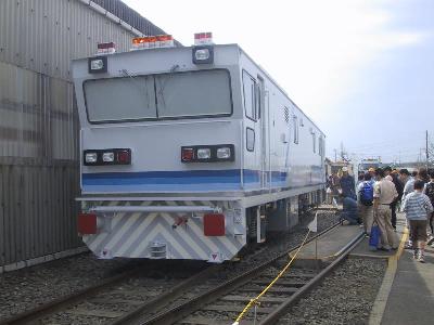 | 新型検測車クヤ31お披露目です。この検測車の愛称も募集していました。 | 後ろからはこんな感じです。 |