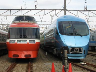 | ロマンスカーと言えばこの配色でした。 | LSEとMSEの並び |