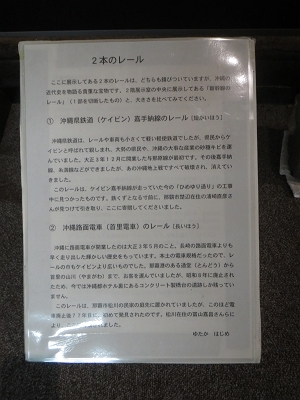 | かつて走っていたレールの説明。 | 上が沖縄路面電車のレール。 下が沖縄県鉄道(ケイビン)のレール。 |