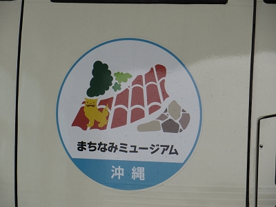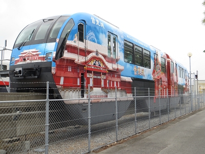 | 車両基地に留置中でした。 | 側面には首里城のラッピング |