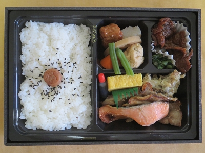 | 東海道線E217系 | 鮭に和食の弁当です。 |