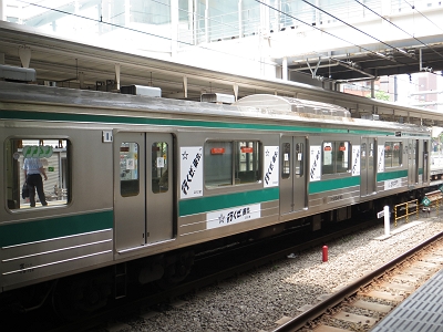 | 埼京線205系のヘッドマーク付の広告はこれが 最後となりました。 2012/07/05 大崎 |