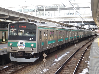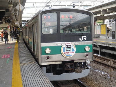埼京線・川越線・りんかい線で活躍してきた205系がE233系と置き換えられることになり、引退することになった。とはいうものの、E233系7000番台に新しい保安装置ATACSを取り付ける工事を実施するため、1編成だけ、予備車として当面は残るようである。その205系が2014年2月1日〜28日にかけてありがとうヘッドマークを付けて運転することになった。車両疎開の関係で2月1日〜6日は22編成に。2月7日〜28日は28編成にヘッドマークが付けられた。