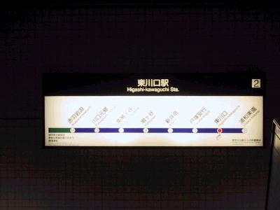 | 改札内にあるポケット広場 待ち合わせの場所に最適 | 東川口 駅名標 |