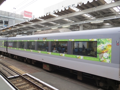 | 側面の様子 | 通勤形の広告車はよくありますが、特急形の広告車は珍しいです。 |