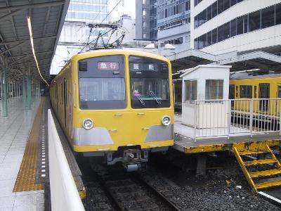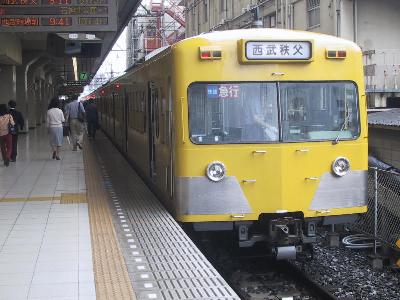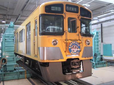 またまたネット上をふらふらと彷徨っていたら、5月31日(土)と6月1日(日)に西武の武蔵丘車両基地を公開するとの情報をGET!西武の車庫なんて行ったことないし、こんな機会はなかなかない。土曜は仕事だけど日曜なら行けそうだなって行ってみることにした。季節はずれの台風の影響がまだ少し残って朝から不安定な天気の中、池袋へと向かった。乗車する列車は池袋9時34分発準急飯能行。この電車は飯能から臨時になり、武蔵丘車両工場まで直通し、ヘッドマークもついている特別電車である。車両は2000系とよく似てるが、10両固定であるところをみると9000系と思われる。って車番を見てこなかったもんですみません。(汗;)。いかにもこれから武蔵丘に行きますというような親子連れも多いのだが、飯能までは定期の準急だから、一般の乗客も多い。石神井公園までは急行運転。途中練馬からは有楽町線が急勾配で合流してきて、ここから複々線を形成すると外側の急行線を気持ちいいくらいにすっとばす。しかし、複々線区間はそう長くはなく練馬高野台までで、そこで、高架区間も同時に終わり、石神井公園の手前で踏切を渡り停車した。ここからは準急なので、