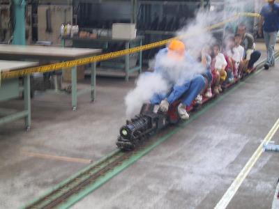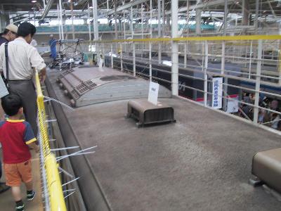 急ではギュウギュウ詰めの中30分も閉じ込められたのだから、西武の対応のよさで株が上がる。そして、さらに驚いたのが、下りたところに、ちゃんとパスネットの精算もできるようになっているのだ。どうせ、パスネットで乗ったら下りるときに困るだろうと思って、予め、東飯能までの乗車券をパスネットで購入していたのだが、そこまで気を使う必要は全くなかった。ここでも去年の京急とは大違い。もう、西武に感心しきり。そして、さらに、感心したのが、全職員がホスピタリティーにあふれていること。制服を着ている職員も、工場の作業着にヘルメットをかぶった人もみんな、お客様に「こんにちは。いらっしゃいませ。」と笑顔を声をかけている。特に、工場系では技術職と呼ばれ、接客とは無縁のちょっとぶっきらぼうの人が多いだろうという勝手な想像はもろくも崩れ落ちた。もちろん、今回のイベントに伴う社内教育があったと思われるが、ここまで徹底しているのはすばらしい。「客に工場内を見せてやってる」ではなく、「お客様に、工場内をご覧になっていただいている」のである。これは、帰りの武蔵丘発の臨時列車が出るときもそうである。お見送りの職員が、一斉に、列車に
