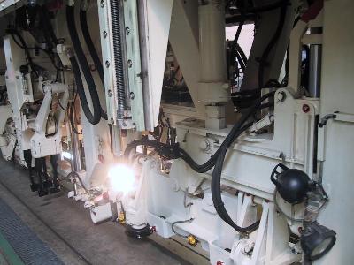 | 塗装行程にある2000系 | 塗装ロボットです。「まっちゃん」「みっちゃん」と名前がついています。 |
