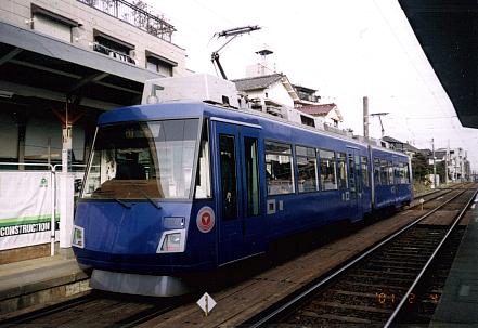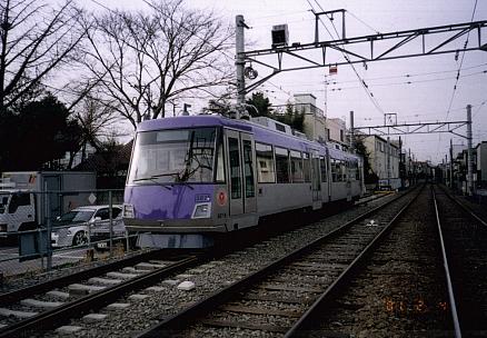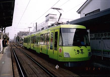 | 世田谷線は現在、ノンステップ化のホーム嵩上げ工事の真っ最中。世田谷駅にて | 150形と交代で登場予定のノンステップタイプの300系紫 |