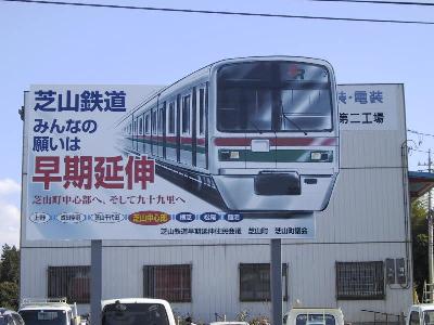 駅の横にはこんな看板がありました。 芝山千代田から先に延伸構想があるようです。ちょっと見にくいので、紹介します。 芝山千代田−芝山中心部−横芝−松尾−蓮沼 となっています。 |
