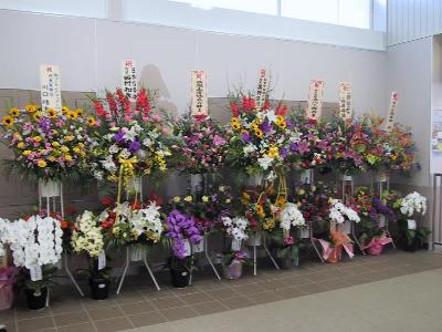 | トイレに行く通路にはこのような「はにわ」が描かれています。 | コンコースにはお祝いの花がたくさんありました。 |