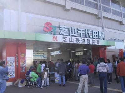 | 芝山千代田駅 さすがに初日ということで、多くの地元の人と、鉄道ファンで賑わっています。 |