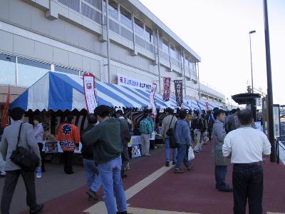 駅前では、地元名産品の即売会をやってました。 ちょうどお昼だったので、250円の山菜おこわを買ったところ、 サービスということで、新鮮なトマトを5個も貰いました。 家に帰ってたべたところ、完熟でとても美味しいトマトでした。 |
