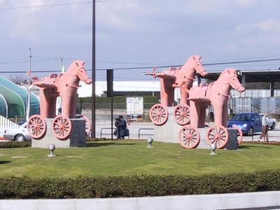| はにわのモニュメントがあります。 このはにわ、実は車輪と羽が動いています。 |
