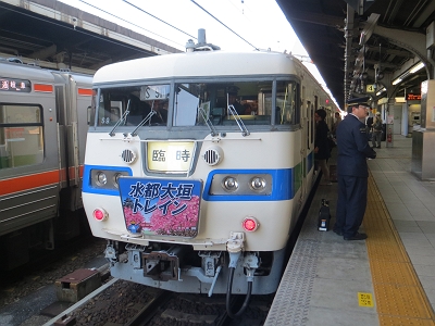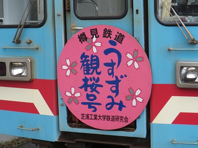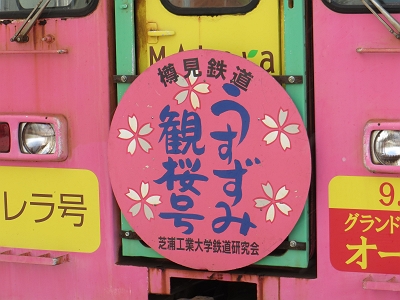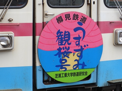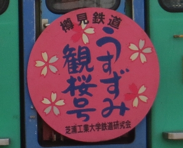 大垣に到着して、そのまま帰るのももったいないので、せっかくこの時期に来たので、樽見鉄道に乗って、薄墨桜を見に行くことにした。樽見鉄道はこの時期桜ダイヤで、臨時列車が運転され、本数も多く、普段は予備車として車庫に寝ている最古参の昭和63年製のハイモ230−313も動いている。また、一部の車両には樽見方に、うすずみ観桜号のヘッドマークが取り付けられて運転されている。よく見るとヘッドマークに芝浦工業大学鉄道研究会と入っているので、寄贈されたのでしょう。