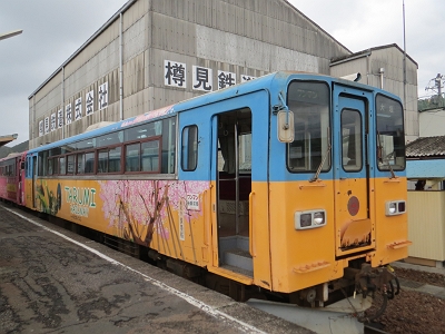 | 昭和63年製の最古参車両。 普段は予備車として車庫にいますが、この日は桜ダイヤのため、運用に 入っていました。乗ることが出来てラッキーでした。 本巣駅 |