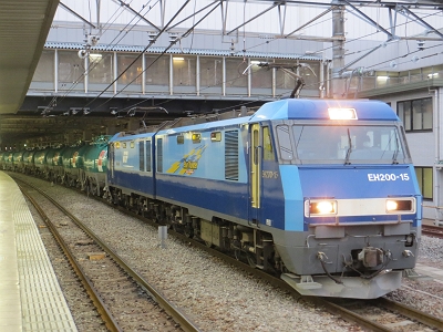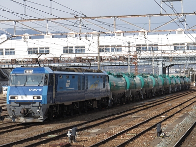 | EH200がタキを引いた貨物列車。 篠ノ井駅 | EH200−15 奇しくも昨日、立川で見た同じ機関車でした。 |