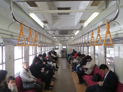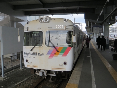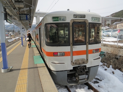 最初の目的は中央線辰野回りで使用されていて今度のダイヤ改正で姿を消す123系ミニエコー。荷電クモ二143から改造され超スーパーロングシートという車内だが、予備車もなくこの1両だけで20年以上も走ってきた。今までよく置き換えられなかったと逆に不思議なくらいだったが、今回、いよいよお役御免となる。以前は急行アルプスが時間稼ぎのために中央線の辰野回りだったが、それもなくなり、辰野回り自体に乗ることが少なくなったので、今回の訪問はいい機会になった。