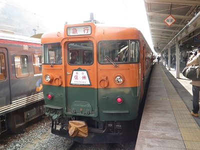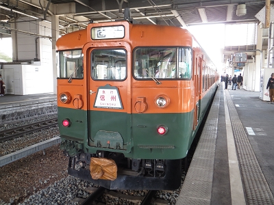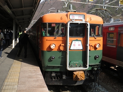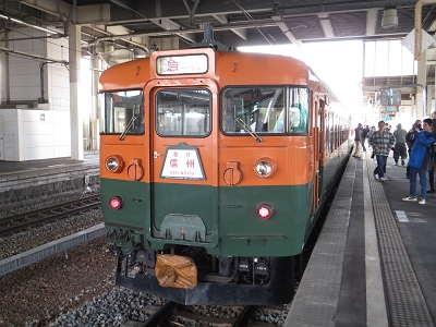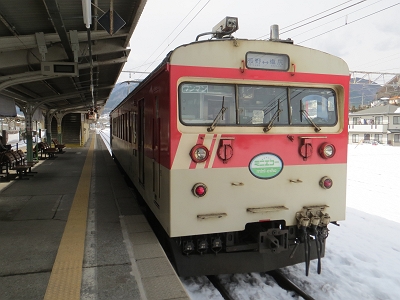 | 湘南色の169系は本当に美しいです。 | 篠ノ井で出発を待ちます。 |