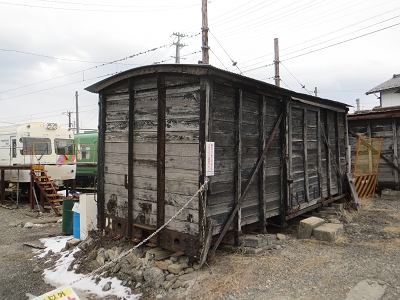 | 元伊奈鉄道の貴重な木造貨車です。 | 2両の貨車が残っています。 いずれ、ちゃんと整備して欲しいものです。 |