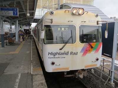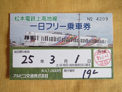 今日は長野に1泊の予定だが、このまま行っても早すぎるので、アルピコ交通上高地線に寄り道をする。ちょうど今日から春休みにも使える1日フリー乗車券(1000円)が使えるので、それを使って、新島々まで往復と途中の新村駅の様子も見てきた。