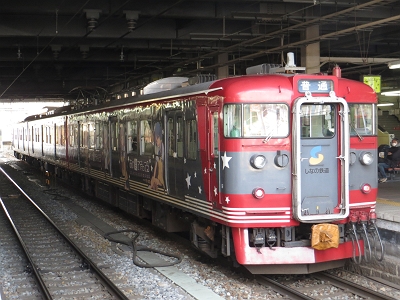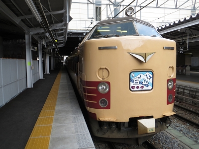 実は、今回はこの白山も目的でした。団体専用で乗ることは出来なかったが、485系国鉄特急色に白山のヘッドマークはこちらも懐かしい限りである。金沢方は文字のマーク。軽井沢方は絵入マークだった。。私は40代前半ですが、私の世代でも、あまり字だけのヘッドマークは記憶になく、やはり絵入の方が印象に残っている。実は、当時は485系ではなく489系だし、今回のヘッドマークは幕ではなくシールだしというイチャモンも聞こえてくるが、雰囲気が良くでているので、私はこれでも十分満足である。