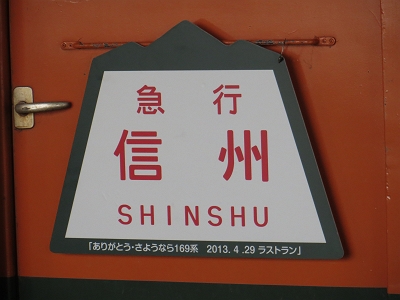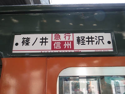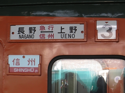 | 3号車だけは、当時走っていた区間の長野⇔上野のサボに なっています。 |