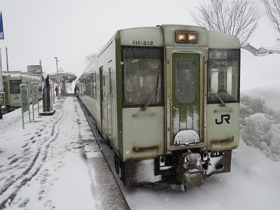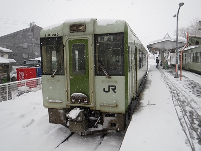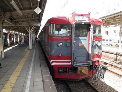 | 交換列車というより、1時間前に長野から到着した列車がここで折り返していきます。 | |
