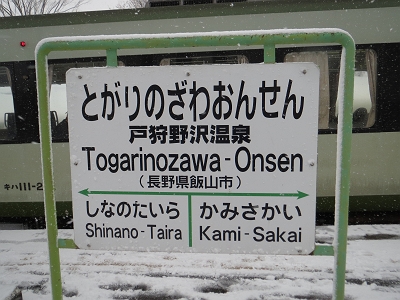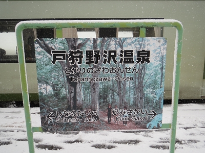 | ここで後ろの車両は切り離されます。 | 戸狩野沢温泉 駅名標 |
