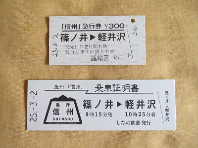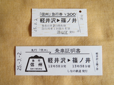 | 急行信州2号 急行券と乗車証明書 | 急行信州1号 急行券と乗車証明書 |