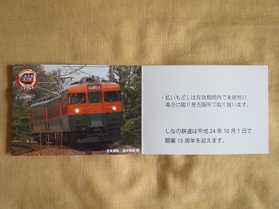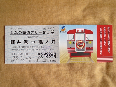 | しなの鉄道フリーきっぷ 開業15周年バージョン | 裏面 |