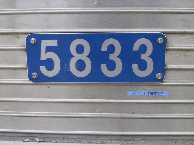 | 側面の車番です。こちらも複製です。 | 切断面はこんな感じです。2番目のドア中央部で切断されています。 |