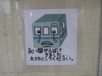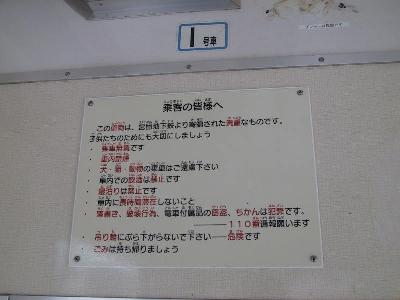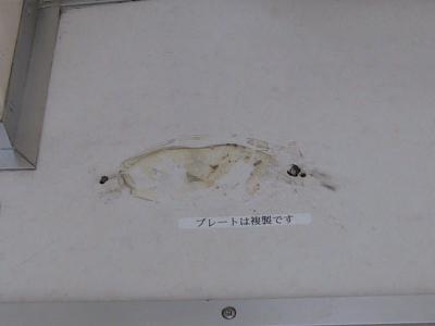 | それでも、製造会社のプレートを持っていくバカがいるようで... | 過去に何度か窓ガラスが割られたことがあるそうで、小学生が書いた と思われるこのようなポスターが貼ってありました。 |