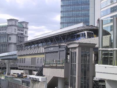 | これがゆりかもめの汐留駅 こちら側のペディストリアンデッキが まだ完成していないためシャッターがおりています。 |