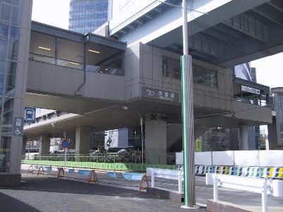 道路からみた汐留駅。脇ではまだ工事をしています。 |