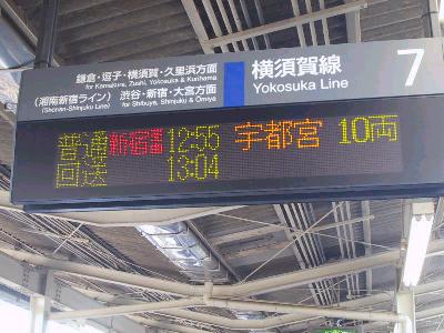 | 大船始発の宇都宮行。「宇都宮線直通」の表記。 | |