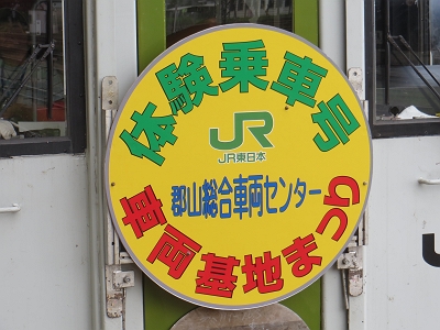 | 車両基地側だけにヘッドマークがついていました。 | 郡山総合車両センター 車両基地まつり 体験乗車号 ヘッドマーク |