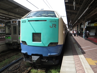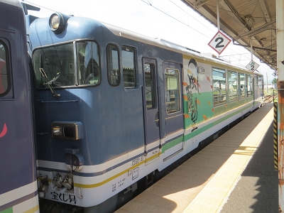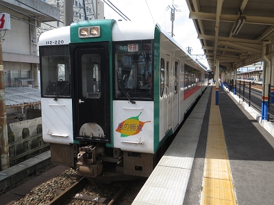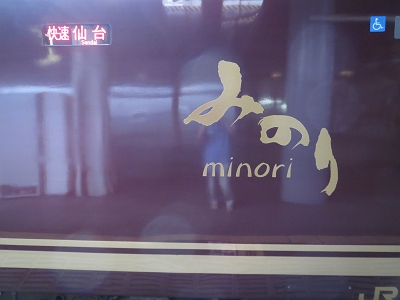 新庄からはリゾートみのり。今回2回目の乗車ですが、前回は仙台から乗ったので、今回は逆方向です。1度乗ったことあるから、そんなに興奮しなかったのですが、ホームに入っているリゾートみのりを見てびっくり。本来3両編成のものが2両しかないではないですか。そして、仙台方は普段見られないキハ48の顔そのものがむき出しになっています。どうして?って思ったら、車両故障でこの日に限り2両編成だったそうです。全車指定席ですが、減車しても事足りたのですね。車両故障という異常時にラッキーというのも憚られるのですが、珍しいものを見ることができました。