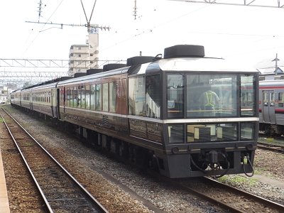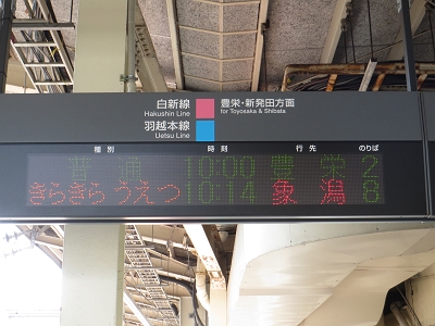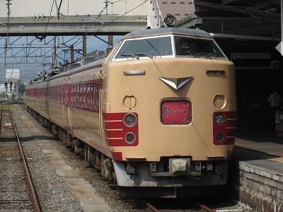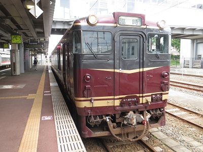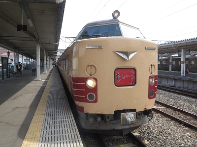 今回のメインである485系きらきらうえつ。品川での車両展示で実物は見ていましたが、実際に乗るのは初めてです。485系を名乗ってはいるものの、下回りだけも流用し車体はほぼ新造なので別形式に思えるほどです。